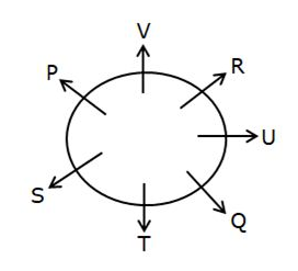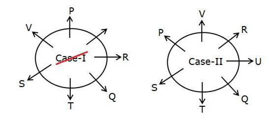 Seven persons namely P, Q, R, S, T, U, and V are sitting around a circular table such that all of them are facing outside the table, but not necessarily in the same order.