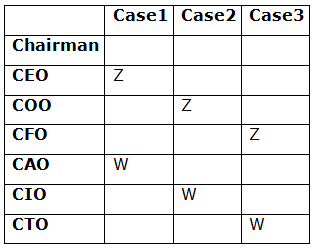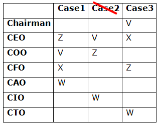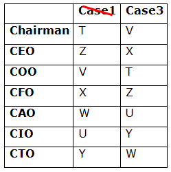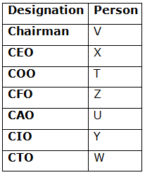 Seven persons – T, U, V, W, X, Y, and Z are working in the company on different designations. The designations of the people in decreasing order are as Chairman, CEO, COO, CFO, CAO, CIO, ands CTO. All the information is not necessarily in the same order.