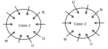 - The number of persons sits between U and N is the same as the number of persons sits between M and O when counted from the right of U.