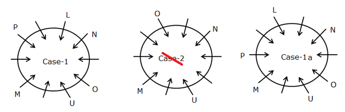 Ten persons- L, M, N, O, P, Q, R, S, T and U are sitting on the circular table facing the centre but not necessarily in the same order. The consecutive alphabetically named persons are not sitting together.