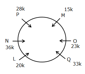 P sits second to the left of the one who gets 20k. O and P are not immediate neighbors. O gets the salary which is an odd number. M sits immediate right of the one who gets 23k. N sits second to the right of M and immediate right of P. Q gets 10k more than O. The difference between the salaries of O and Q is twice the difference between the salaries of L and M. M gets less than O. The sum of the salaries of M and O is 2k more than N. One of the persons gets 28k.