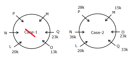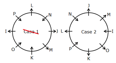 2) P sits second to the right of N whereas O sits second to the right of P. Two persons sit between L and M where both face the same direction. J sits to the immediate left of M but not second to the right of K. Hence, case 1 gets eliminated.