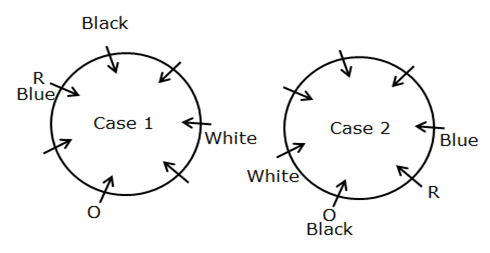 - Only one person sits between O and the one who wears blue, who sits third to the right of the one who wears white.