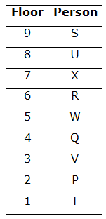 Nine persons- P, Q, R, S, T, U, V, W, and X are living in the nine-floor storey building. The lowermost floor is numbered as one and the topmost floor is numbered as nine. All the information is not necessarily in the same order.