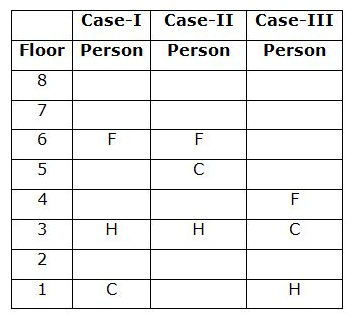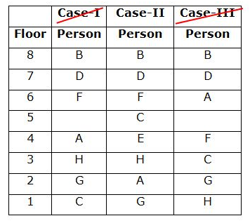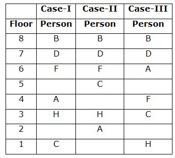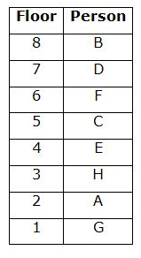 Eight persons viz. A, B, C, D, E, F, G, and H live on an eight storey building, but not necessarily in the same order. The bottommost floor is numbered as one and the topmost floor is numbered as eight.