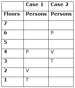 V stays on an even-numbered floor. P stays two floors above V. Two persons are staying between P and T, who does not stay on the topmost floor. As many persons who stay below V is the same as the persons who stay above U. S stays two floors below R, who does not stay at the topmost floor.