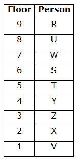 Nine persons- R, S, T, U, V, W, X, Y, and Z are living in the nine-floored building such that the lowermost floor is numbered as one and the floor just above the lowermost floor is numbered as 2 and so on till the topmost floor is numbered as nine. All the information is not necessarily in the same order.