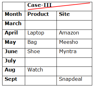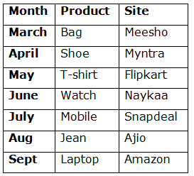 Seven online sites namely Naykaa, Myntra, AJIO, Flip kart, Amazon, Snap deal and Meesho were delivered seven different products laptop, Jean, Bag, Watch, T-shirt, Mobile and shoe in seven different months from March to September.
