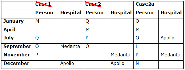 - The one who takes in Medanta hospital does not take in the month which has an odd number of days.