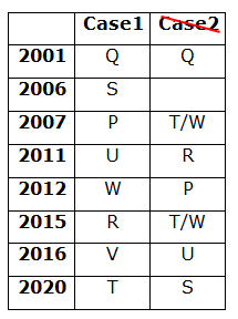 P bought four years before U. U did not buy in 2015. The numbers of persons bought before P is the same as after R. Only three persons bought between R and S. There is eight years difference between T and W. The number of persons bought between Q and W is the same as between U and T.Q bought on odd number year.