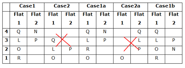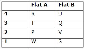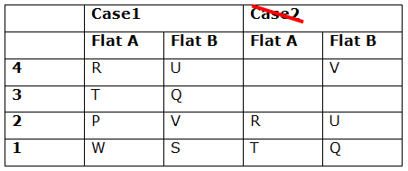 (All the four persons are living on an even flat and odd floor or vice versa but R lives on an even floor and even flat)