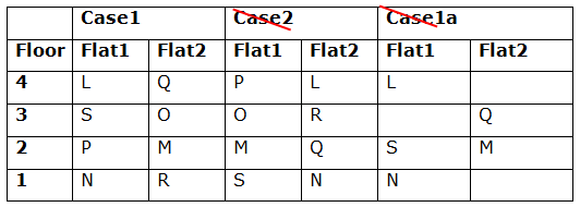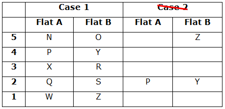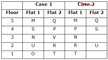 3) The number of the floors below N is one more than the number of floors above P.O lives below V but not on the same flat. Hence, case 2 gets eliminated.
