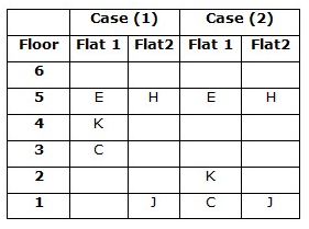 E and H stay on the same floor above the floor on which C stays, but not immediately above. There are only three floors between H and J, both stay on flat no. 2. C stays just below K and both stays on flat no. 1. C does not stay on even numbered floor. B stays on immediately above D and both stays on the same flat number. D stays on even numbered floor. G stays on the topmost floor. Only three floors between G and A, both stays on a different flat number. L stays below F, both stay in different flat number. There is more than one floor between L and F.