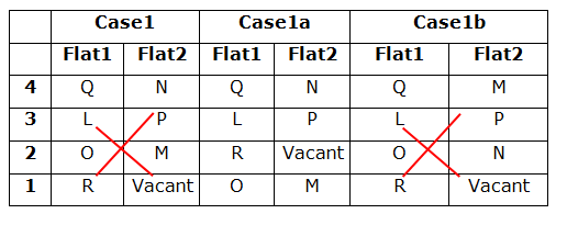 From the above condition, case2 and case1a get eliminated. case1 shows the final arrangement.