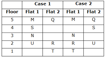 1) U lives on an even-numbered floor and two floors below S in the same flat. Only one floor is there between S and R who lives immediately above T in same flat.